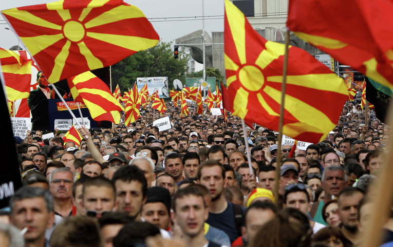 Внезапное «набухание» очередной цветной революции в двухмиллионной балканской стране — Македонии — вызывает ощущение дежа-вю. Десятки тысяч явно не изможденных тяжелой жизнью протестующих, стекающиеся четырьмя колоннами к зданию правительства, отличные палатки и динамики явно иностранного производства, неизвестно откуда взявшиеся аудиозаписи, компрометирующие руководство страны…