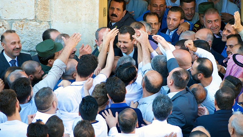 На восьмисекундном видео запечатлено, как сирийский президент заходит в здание и идет по коридорам.