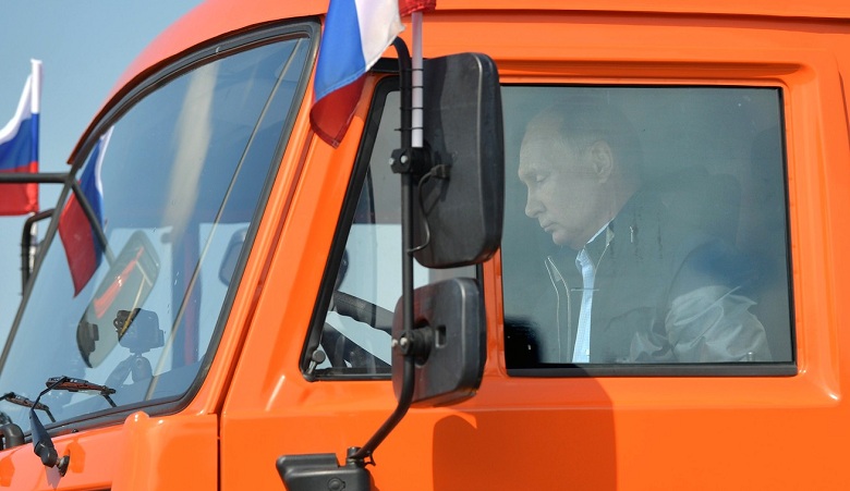 Süddeutsche Zeitung: «Ко множеству ролей, которые Путин играл в прошлом, добавилась еще одна. Ранее он уже был рыбаком, охотником, защитником птиц и подводником, а теперь стал еще и водителем грузовика. Сидя за рулем оранжевого КамАЗа, он первым приехал в Крым по новому мосту, который ведет на полуостров с российского материка.