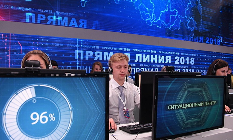 Эфирная студия теперь полностью мультимедийная. По всему периметру расположены видеостены, обращения будут выводиться в том числе и на уникальный прозрачный экран. Вопросы к «прямой линии» начали собирать 27 мая. Уже через два дня их набралось почти 200 тысяч. Чаще всего россияне обращались по телефону (более 760 тысяч), с помощью СМС (свыше 300 тысяч), а также через специальный сайт (около 140 тысяч). Колл-центр, принимавший звонки, превратился в ситуационный центр: обращения не только фиксировали, но и сразу пытались помочь.