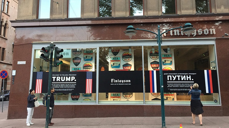 Между тем газета Ilta-Lehti сообщает, что строгие меры безопасности не помешали активистам в Хельсинки ночью разместить видеопроекцию с лозунгом на здание, прилегающее к Президентскому дворцу, где пройдет встреча Путина и Трампа.