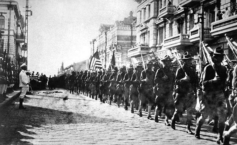 а спустя десять дней американские экспедиционные части высадились во Владивостоке. Поводом для интервенции послужило решение советского правительства, пришедшего к власти в результате Октябрьской революции, заключить мир с Германией, в результате чего Россия фактически вышла из Первой мировой войны.