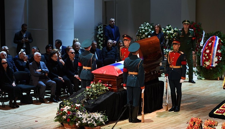 Коллеги, близкие и поклонники творчества прощаются с певцом и депутатом Иосифом Кобзоном в московском Концертном зале имени Чайковского.