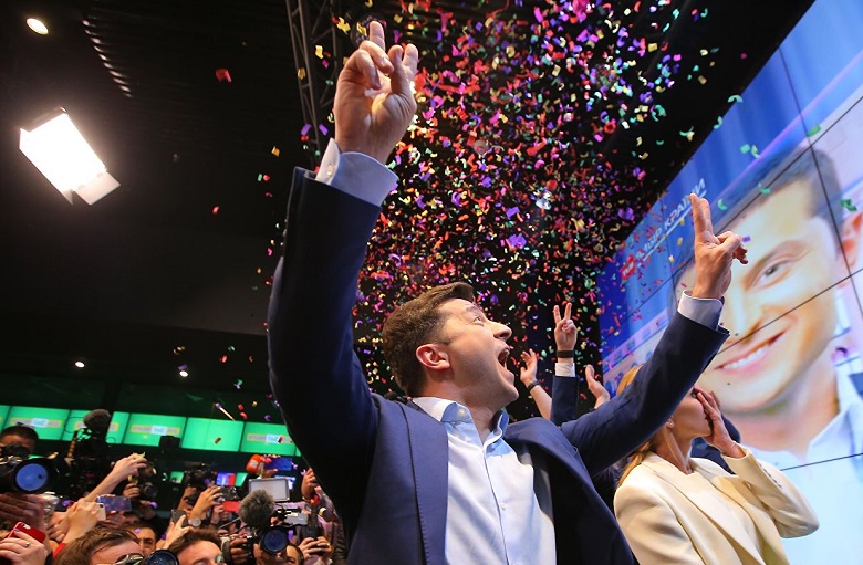 Даже в крайне «демократической» The Washington Post, традиционно внимательно относящейся к любым загогулинам в странах данного региона, новость о смене лидера в «крупнейшей восточноевропейской демократии» подана хоть и на первой полосе, однако после не только террористических актов на Шри-Ланке, но и даже обсуждения уже далеко не «новостного» доклада Мюллера, а также предложений администрации Трампа по изменениям в правосудии, связанным с возвращением и досрочным освобождением осужденных по уголовным преступлениям. И только после всего этого следует небольшая информационная заметка с довольно пренебрежительным заголовком «Комик избран президентом Украины» и фотографией кривляющегося Зеленского.