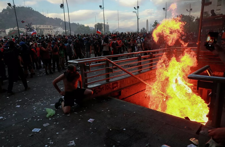 Многотысячные (вплоть до миллиона участников) манифестации, причем не только в Сантьяго, но и в других городах. Беспорядки и насилие. Более двух десятков погибших. Только торговля в стране получила убытков на 1,4 миллиарда долларов. Метро в Сантьяго разгромлено: девять станций сожжены полностью, тринадцать — частично, сорок одна станция получила серьезные повреждения, еще семнадцать — незначительные, в целом ремонт потребуется 80 станциям из 136.