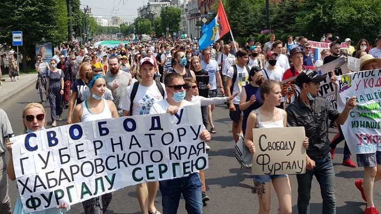 Кампания пристыжения началась с мэра Кравчука, который заявил, что на протесты выходят купленные люди. На здании местной больницы (которая стоит прямо у главной площади Ленина, где и происходят митинги) вывесили огромный баннер «Я Мы просим тишины» (намек на то, что митингующие мешают больным отдыхать). Похожих плакатов вроде «мы за тишину», «против митингов» на обычных многоэтажках вдруг внезапно появилось немало — как я подозреваю, не без разнарядки сверху. В общем, активно продвигается идея, что не надо идти на поводу у купленных (Западом, Фургалом, бандитами, неустановленными лицами) активистов, мешать «простым людям» жить и подумайте о своих детях и стариках, которые могут заразиться (при этом хабаровский общественный транспорт утром и вечером забит битком). Очень «популярной» личностью стал Соловьев, назвавший хабаровчан, участвующих в протестах, «пьяным быдлом». Вот эта вот федеральная кампания по очернению местных жителей является тем, что активно подогревает протест, потому что бьет по самуоважению дальневосточников…