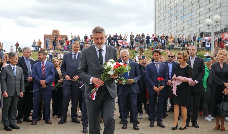 В четверг же 20 дипломатов из европейских стран в Минске демонстративно возложили цветы у метро «Пушкинская» – на месте гибели одного из протестовавших. Напомним, участник протеста в Минске Александр Тарайковский погиб, по версии белорусских властей, когда собирался бросить взрывное устройство в силовиков. Сообщалось, что у погибшего была судимость за нанесение тяжких телесных повреждений.