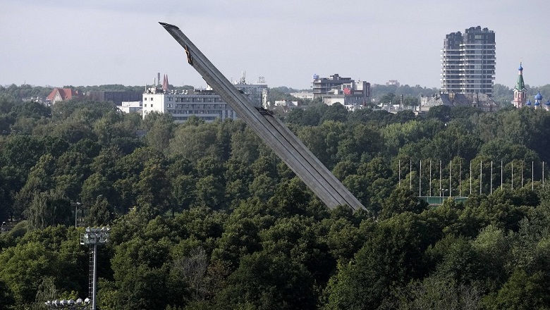 В рижском парке Победы демонтировали последний элемент памятника Освободителям — 79-метрового обелиска.