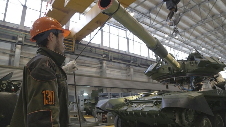 «А так как потребность в танках в десять раз больше, на предприятии ежемесячно модернизируются еще и по восемь танков более старого класса Т-72. На трех других заводах модернизуют по 50 машин в месяц, а еще на двух строящихся заводах планируют модифицировать по 30 штук в месяц (цитата по ИноСМИ). Как объясняет немецкому изданию Александр Гольц, эксперт по военным вопросам и вооружению в Шведском институте внешней политики: «В битве «на износ», которая сейчас идет на Украине, разумнее использовать два старых танка, чем один новый».