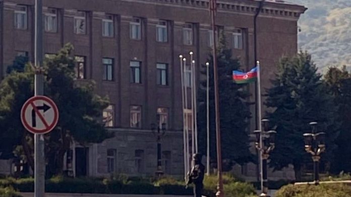 Азербайджанским флагом над Степанокертом.