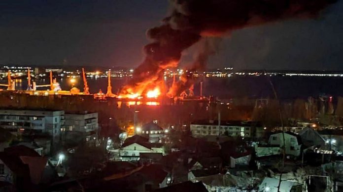 В ночь на вторник, 26 декабря, произошел обстрел морского торгового порта Феодосия. Через этот порт ведется экспорт зерна и нефтепродуктов. Предположительно, поврежден как минимум один корабль и хранилище горючих веществ. Взрывы были такой мощности, что пришлось эвакуировать жителей близлежащих домов.
