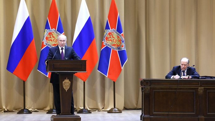 Владимир Путин на заседании коллегии ФСБ призвал сотрудников ведомства не забывать про предателей, которые вступили в украинские диверсионно-разведывательные группы.