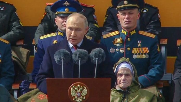 После выступления президента России Владимира Путина и минуты молчания началось торжественное шествие войск.