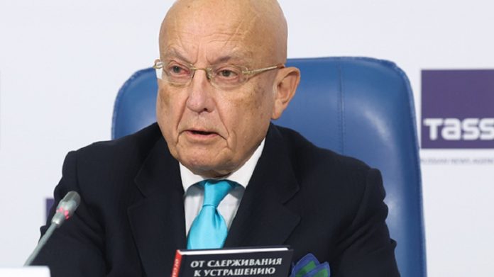 «Лет 6–7 тому назад я увидел, что мы катимся к третьей мировой войне и одновременно США и вообще мировое сообщество начинают затирать тему ядерного оружия, потому что ядерное оружие в нынешних обстоятельствах им невыгодно и не позволяет перевести их экономическую и военную мощь в политически значимые экономические результаты», — заявил научный руководитель факультета мировой экономики и мировой политики НИУ ВШЭ Сергей Караганов, когда накануне открывал в пресс-центре ТАСС презентацию книги «От сдерживания к устрашению». По сути, это отредактированный для открытой печати доклад, представленный авторским коллективом руководству России. Книга — совместная работа директора по науке Института мировой военной экономики и стратегии НИУ ВШЭ Дмитрия Тренина, директора этого института адмирала Сергея Авакянца и Караганова. Ответственным редактором выступил директор центра военно-экономических исследований Прохор Тебин.