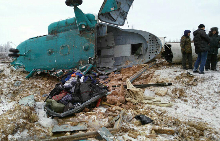 Следствие рассматривает три версии крушения вертолета Ми-8, приведшего к гибели 19 человек. По факту крушения вертолета возбуждено уголовное дело по ч. 3 ст. 263 УК РФ («Нарушение правил безопасности движения и эксплуатации воздушного транспорта, повлекшее по неосторожности смерть двух и более лиц»).