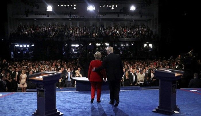 26 сентября прошли первые дебаты между кандидатами в президенты США от Демократической и Республиканской партий Хиллари Клинтон и Дональдом Трампом. Они будут проводиться в три тура. В первом раунде дебатов Клинтон и Трамп встретились в Университете Хофстра в Хемпстеде (шт. Нью- Йорк), 9 октября вторые дебаты пройдут в Университете Вашингтона в Сент-Луисе (шт. Миссури) и 19 октября в Университете Невады в Лас- Вегасе (шт. Невада) состоится завершающий раунд. Дебаты между кандидатами на пост вице- президента — Тимоти Кейном (от демократов) и Майком Пенсом (от республиканцев) — состоятся 4 октября в Университете Лонгвуд в Фармвилле (шт. Вирджиния).